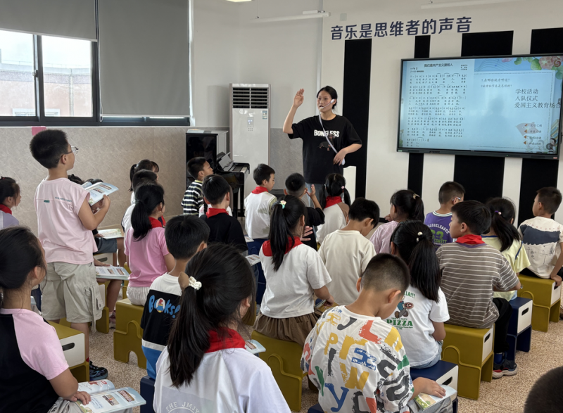 9月18日,吴绫实验小学新教师张妍以《我们是共产主义接班人》为主题,带来了一堂生动的音乐课。