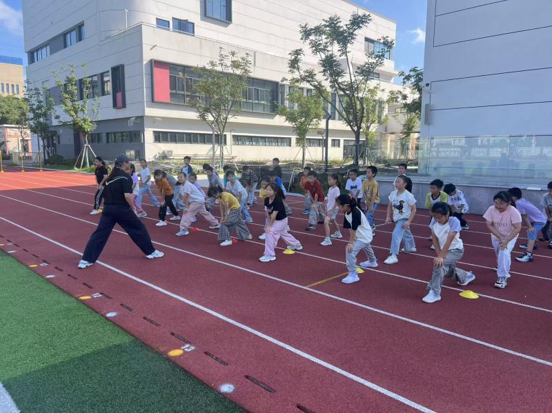 活动伊始,由张顶老师执教的四3班进行“加速跑”。课堂上,张老师结合小学生身心特点,通过趣味热身游戏激活学生运动状态,随后运用分解练习、示范讲解、分组竞赛等方式,重点指导学生快速反应、多种形式起跑的动作要领,引导学生在实践中体会摆臂、蹬地的协调配合,课堂氛围活跃高效。